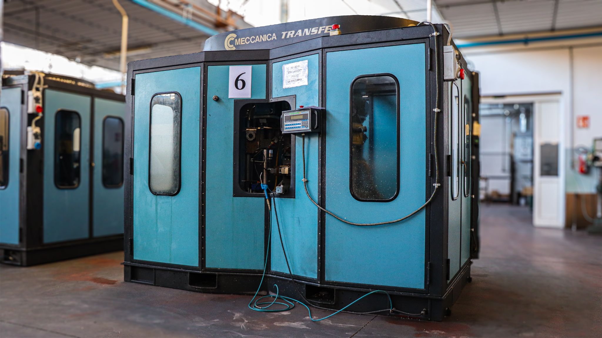 Macchina transfer a tavola rotante, asse verticale, 5 stazioni, 5 morse autocentranti, 4 unità operatrici con possibilità di porsi in orizzontale e verticale. La macchina può eseguire in sequenza automatica lavorazioni di foratura, filettatura fresatura.
